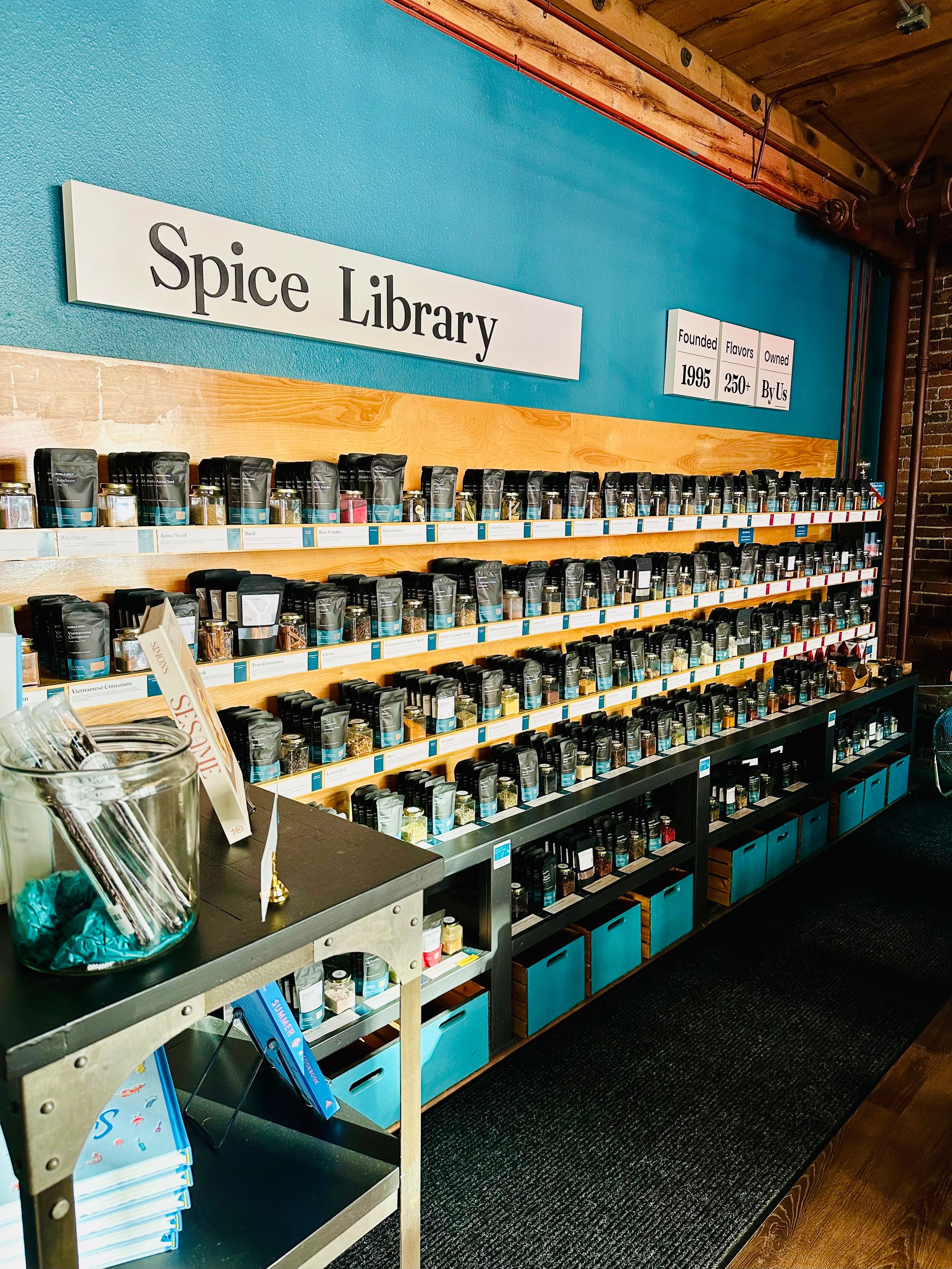 Visitors can taste many of our proprietary spice blends and teas, plus take in the sights and smells of our full library.