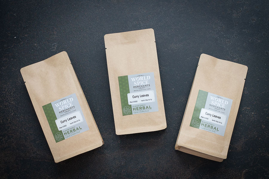 Curry leaves come from an Indian tree and are traditionally used fresh but are hard to find here in the US. The dried leaves are much milder and have a unique flavor that hints at nut butter and hay. The flavor of the dried leaves is incredibly subtle and enticing at the same time. Our first use of them was an infusion in ghee and the flavor had great appeal.