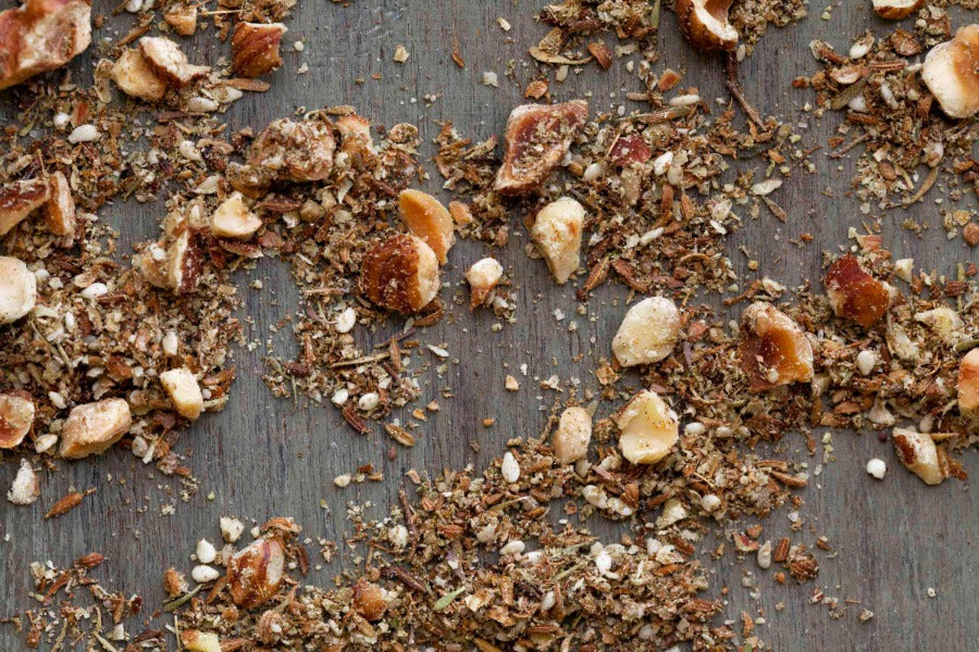 A traditional blend from Egypt, this savory mix of herbs, spices, salt, and nuts offers unique flavor and texture. Present freshly ground Dukkah alongside olive oil as a flavorful dip for crusty bread or sprinkle some on baked flatbread, grain, or vegetable salads.