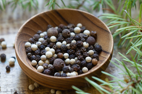 This festive blend of bold Vietnamese Black Peppercorn, creamy White Peppercorn, and spicy Jamaican Allspice is delightful in any season but perfect when there's a chill in the air!
