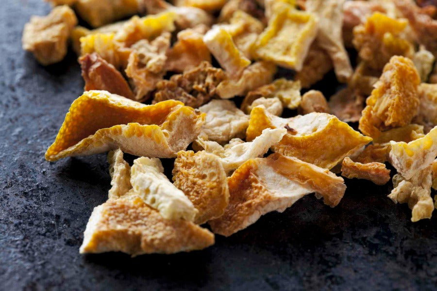 This large 1/4" chop is perfect for infusion into teas and added to Chai spice blends. The essential oil in the large piece needs plenty of liquid to infuse its flavor, so be sure not to constrain the orange peel in the brewing process. Flow freely and strain after the infusion is accomplished.