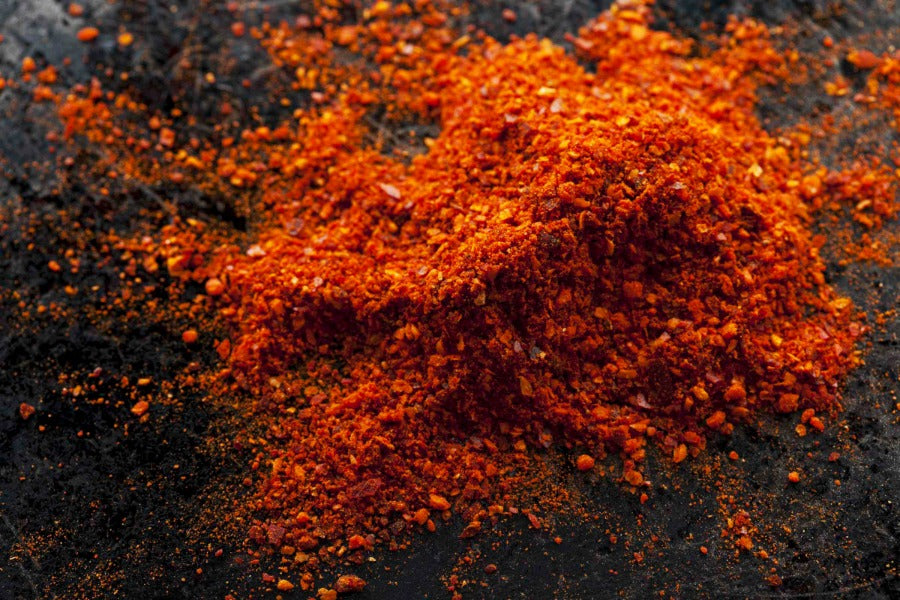 Just a taste of this legendary chile will transport you to the French village of Espelette and its balconies bedecked with drying peppers. The flavor profile of Piment d'Espelette is fresh and fruity with a hint of heat—spicy without being overpowering—and is essential to Basque and regional French cooking. We are delighted to offer this hard-to-find pepper with the French AOC designation.